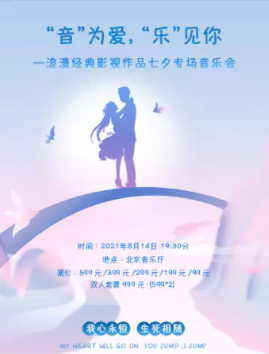 2021年8月14日,我们在北京音乐厅等你,与你邂逅一场浪漫唯美的爱情视听盛宴!