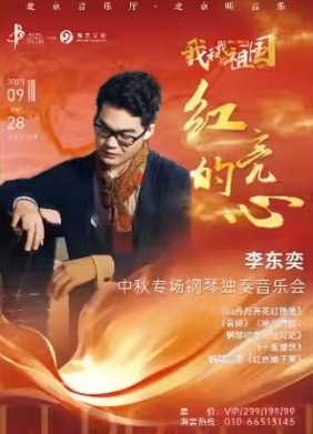我和我的祖国·“红亮的心”一一李东奕中秋专场钢琴独奏音乐会 时间:2023.09.28 周四 19:30 场馆:北京音乐厅 票价:99/199/299 微信订票:18515362586 订票电话:400-600-4100