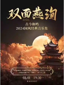 古今和鸣-2024国风经典音乐曲集《双面燕洵》 时间:2024.03.01 周五 19:30 场馆: 北京音乐厅 票价:180/280/380/480 微信订票:18515362586 电话:010-66552258,400-600-4100
