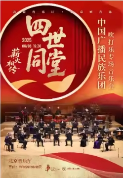 “打开音乐之门”·薪火相传·“四世同堂” 中国广播民族乐团吹打乐专场音乐会 时间:2025.06.06 周五 19:30 场馆:北京市 | 北京音乐厅 票价:99/199/299 微信订票:18515362586 电话订票:010-66552100,010-66552258